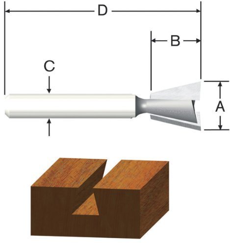 Vermont American 23115 9/16-Inch by 7.5-Degree Carbide Tipped Dovetail Router Bit, 2-Flute 1/4-Inch Shank Feature